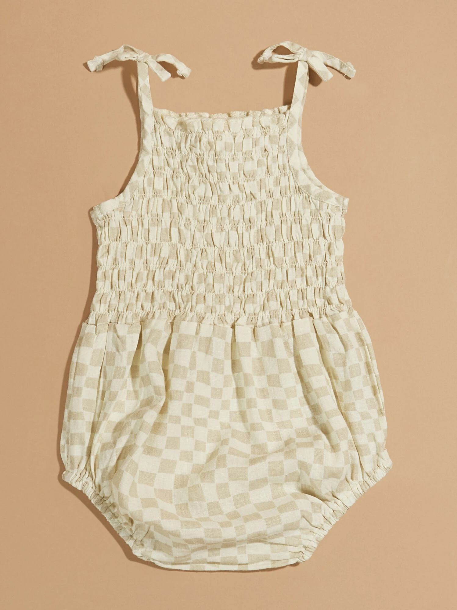 For a simplistic style and easy one and done design, this breathable woven bubble is an easy day to day staple for your girl. The smocked bodice, fixed tie straps, and checkered print offer the cutest style with a retro flare, while the lightweight eco-friendly fabric offers ultimate comfort.