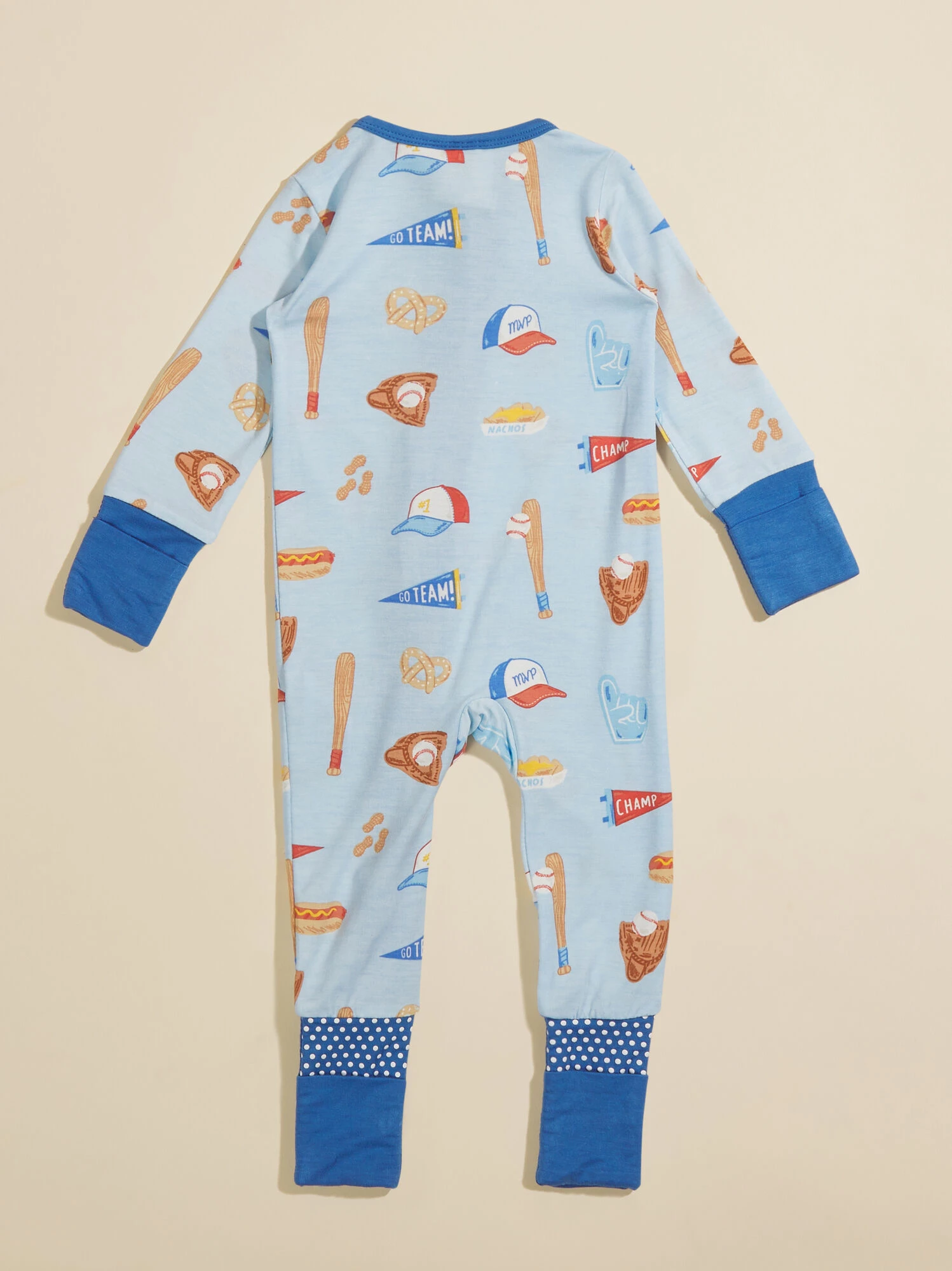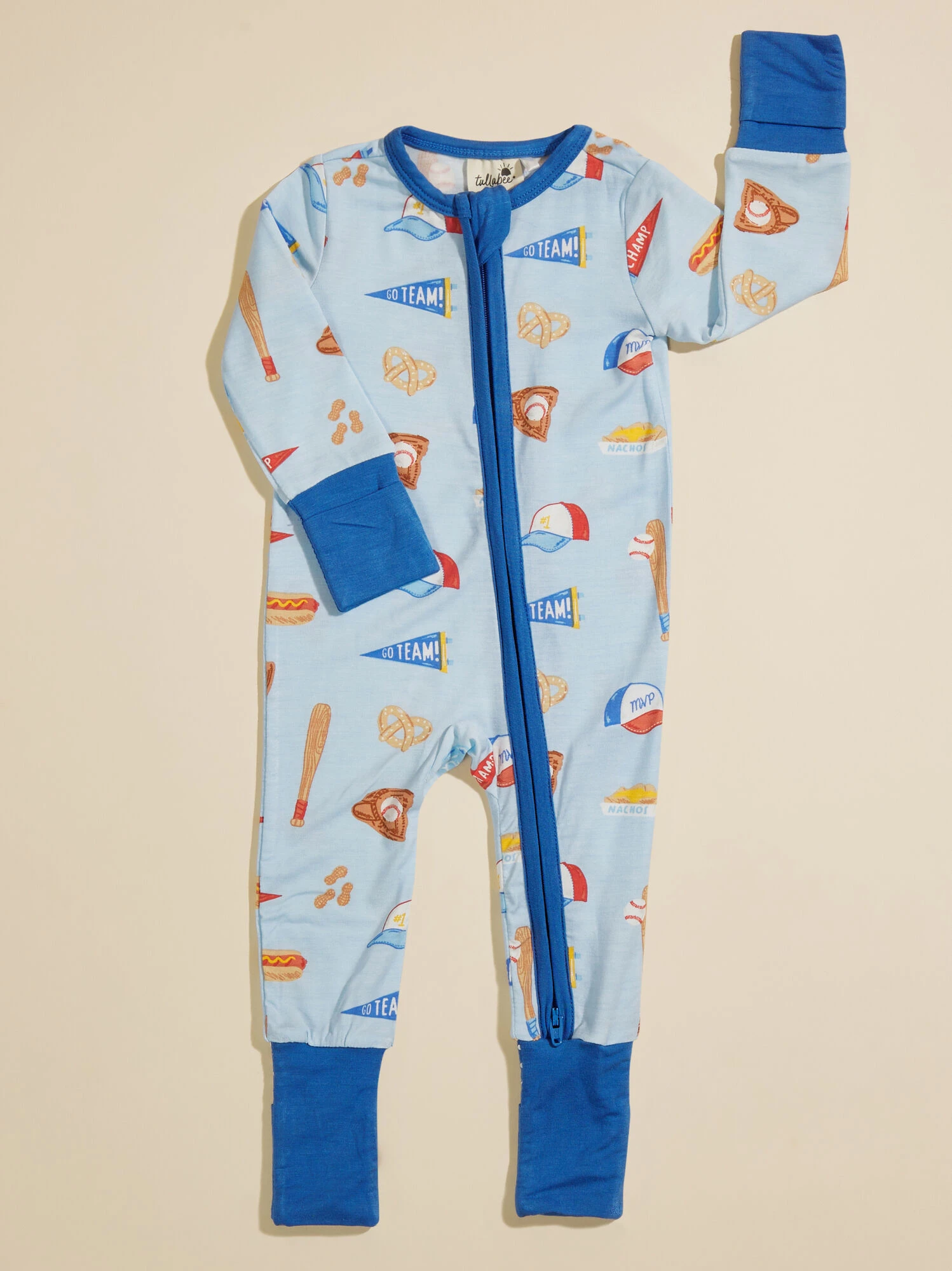 Your little baseball lover will stay oh-so cozy in this ultra soft sleeper, carefully crafted from eco-friendly fabric from bamboo. The two way zipper and fold over hand and foot cuffs meet all of you and your babe’s practical needs for outfit changes and bedtime.