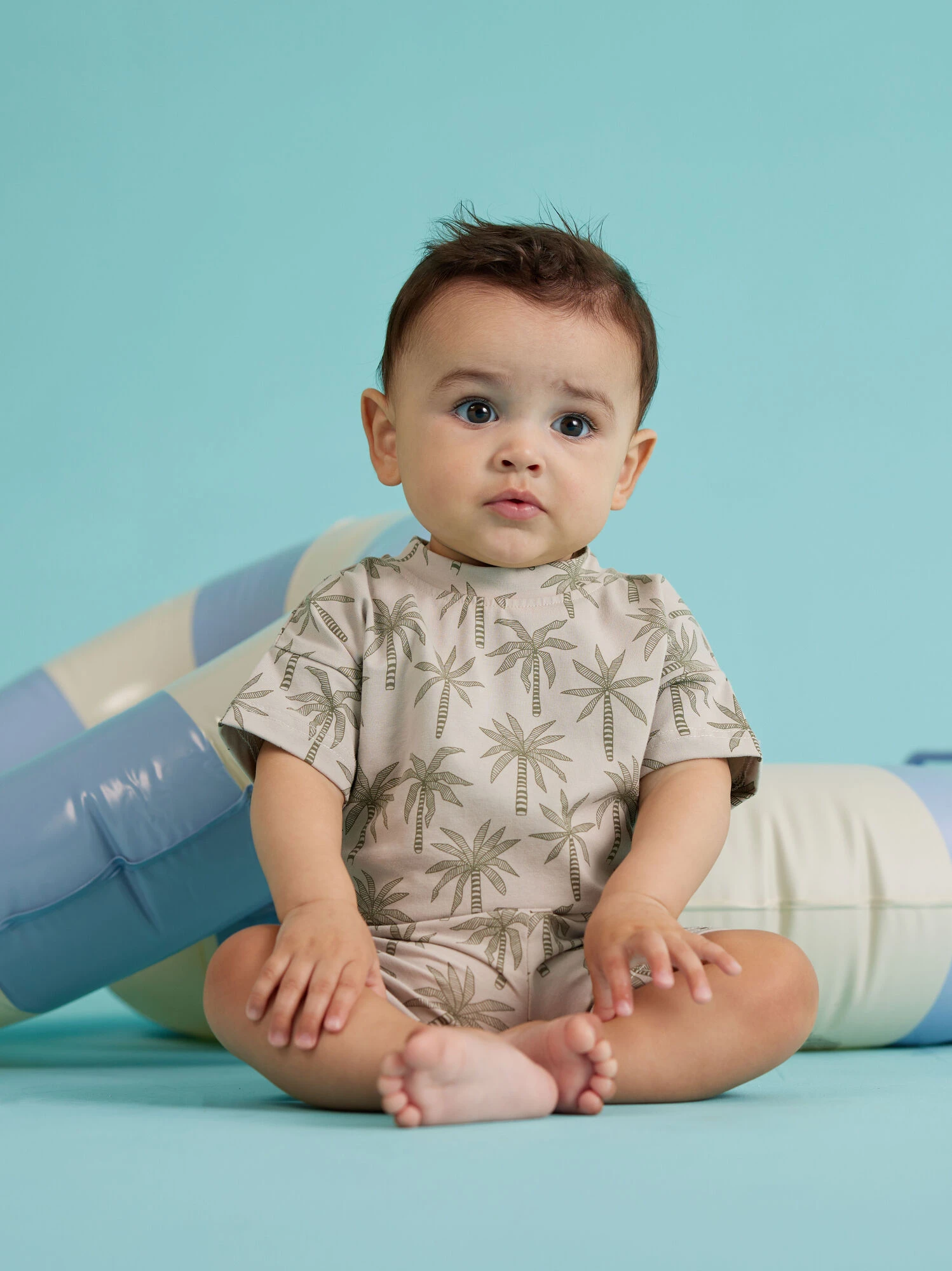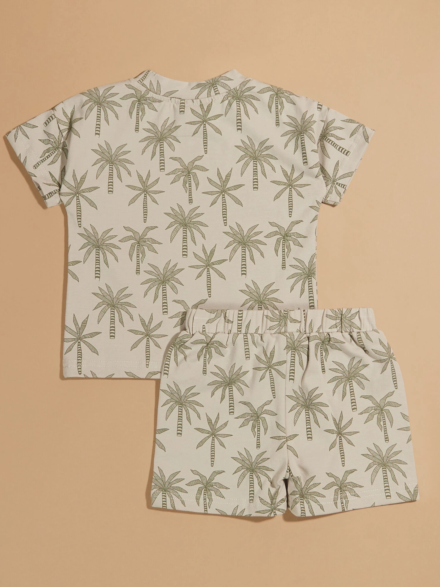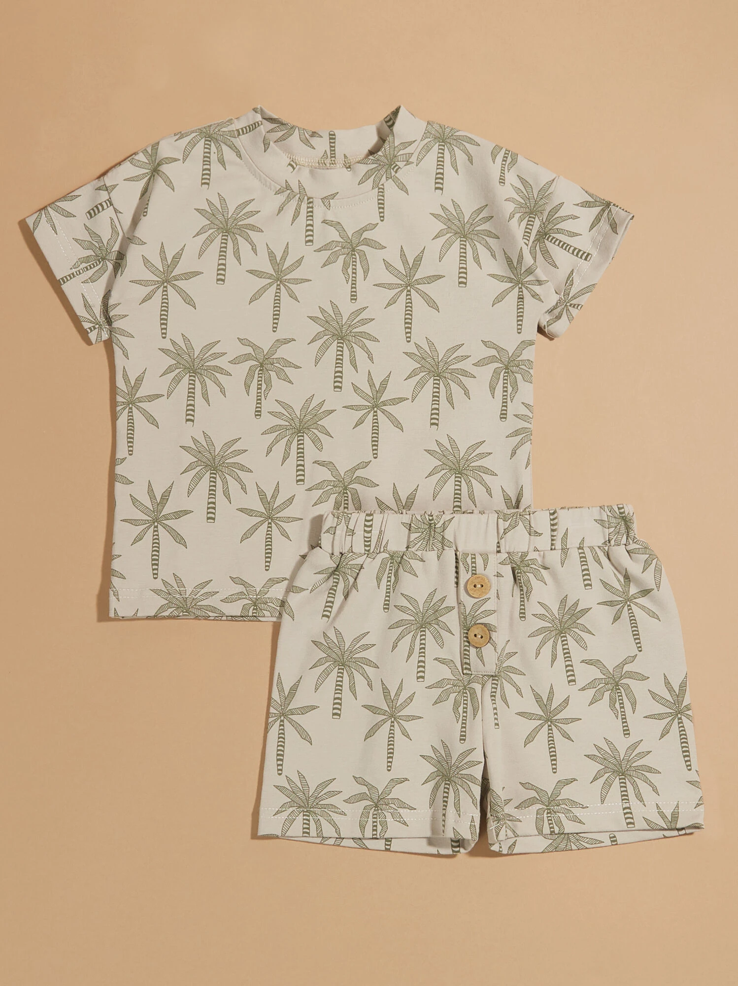 Get your little beach boy this cozy matching set featuring a palm tree print, perfect for summer adventures. The buttery smooth fabric offers a soft stretch for ultimate comfort, while the classic crewneck tee and elastic waistband shorts offer a timeless style for day to day play.