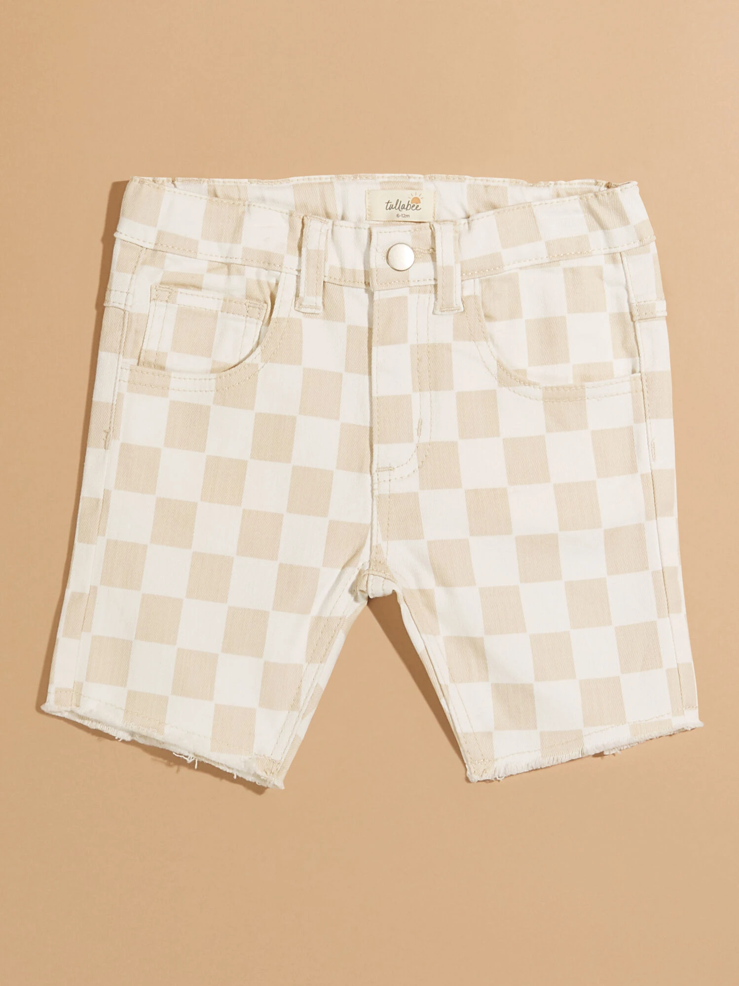 These adorable denim shorts add a retro touch to your boy’s look featuring a fringe hem and checkered pattern. With four pockets, these bottoms offer practicality for storing tiny essentials, while the button and zipper closure ensures a secure and comfortable fit.