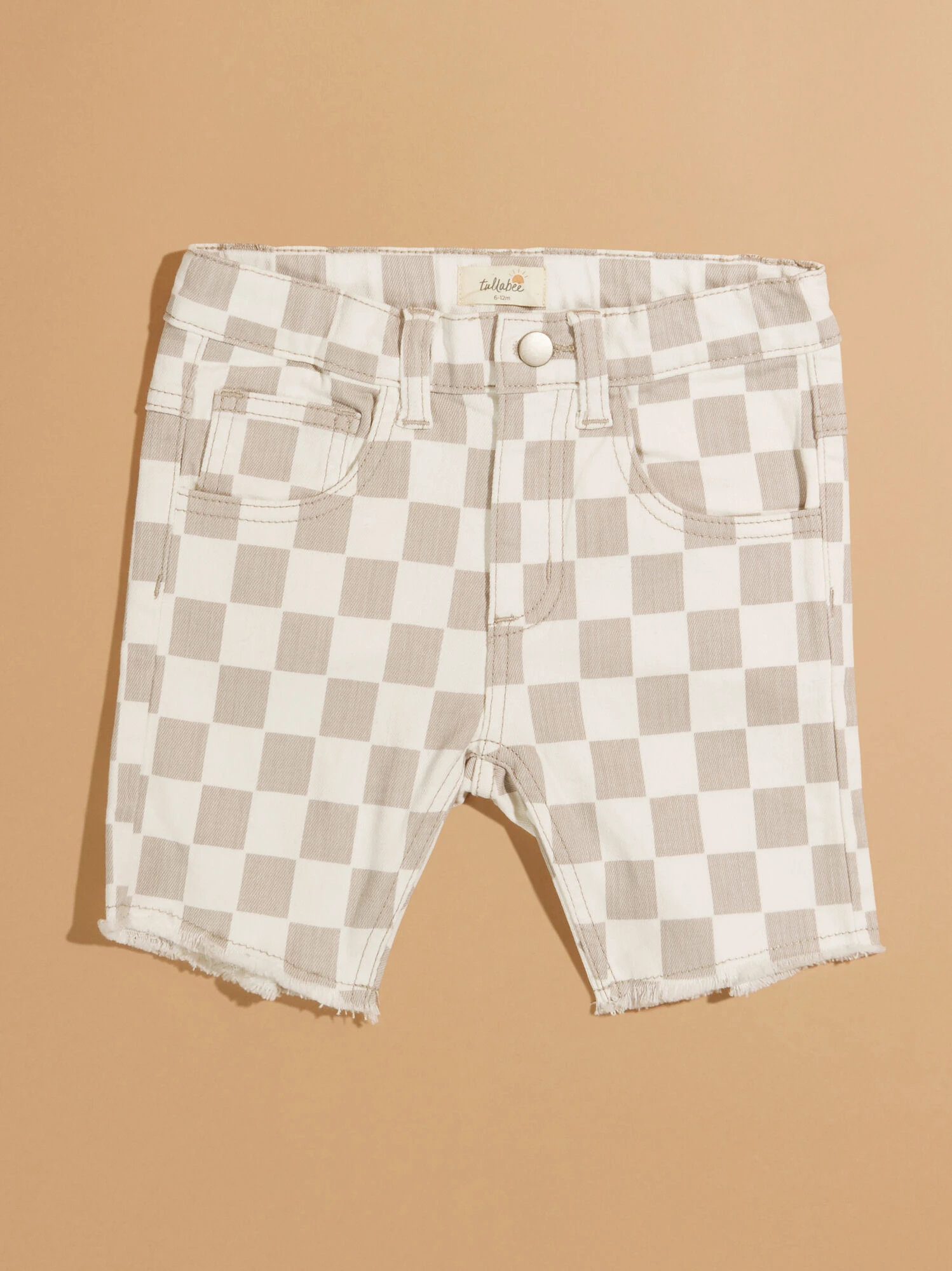 These adorable denim shorts add a retro touch to your boy’s look featuring a fringe hem and checkered pattern. With four pockets, these bottoms offer practicality for storing tiny essentials, while the button and zipper closure ensures a secure and comfortable fit.