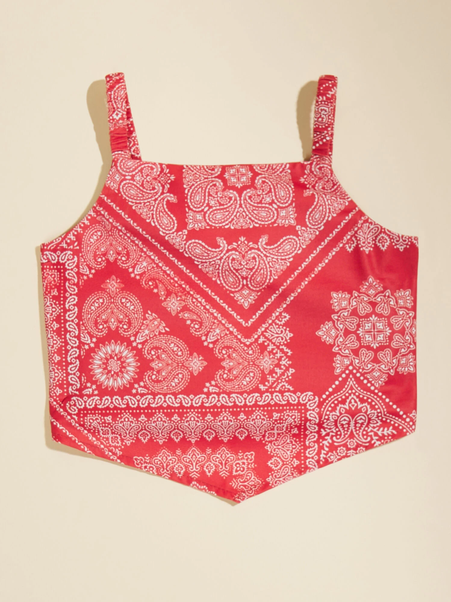Complete your girl’s western look with this lightweight tank in a bandana print design and silhouette with a v-shaped hem. The elastic straps and smocked back offers a stretchy fit for maximum comfort, while the soft lining ensures breathability on warm summer days.
