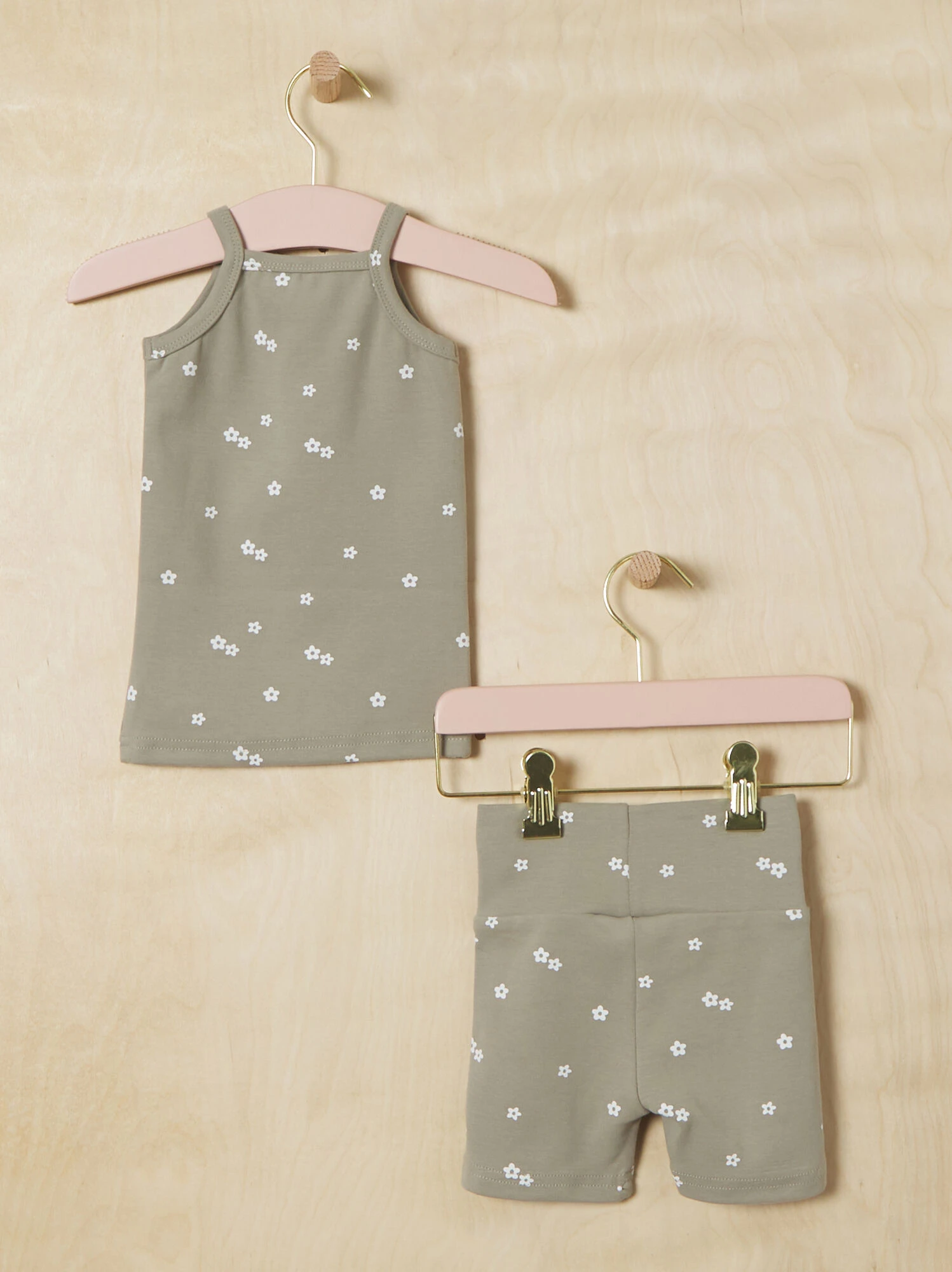 Made to move, this tank and biker shorts set with its charming floral print is the perfect ensemble for your little one’s playful adventures. This set combines cuteness and comfort, with a lightweight feel and soft stretch, ensuring your babe stays happy during any activity.