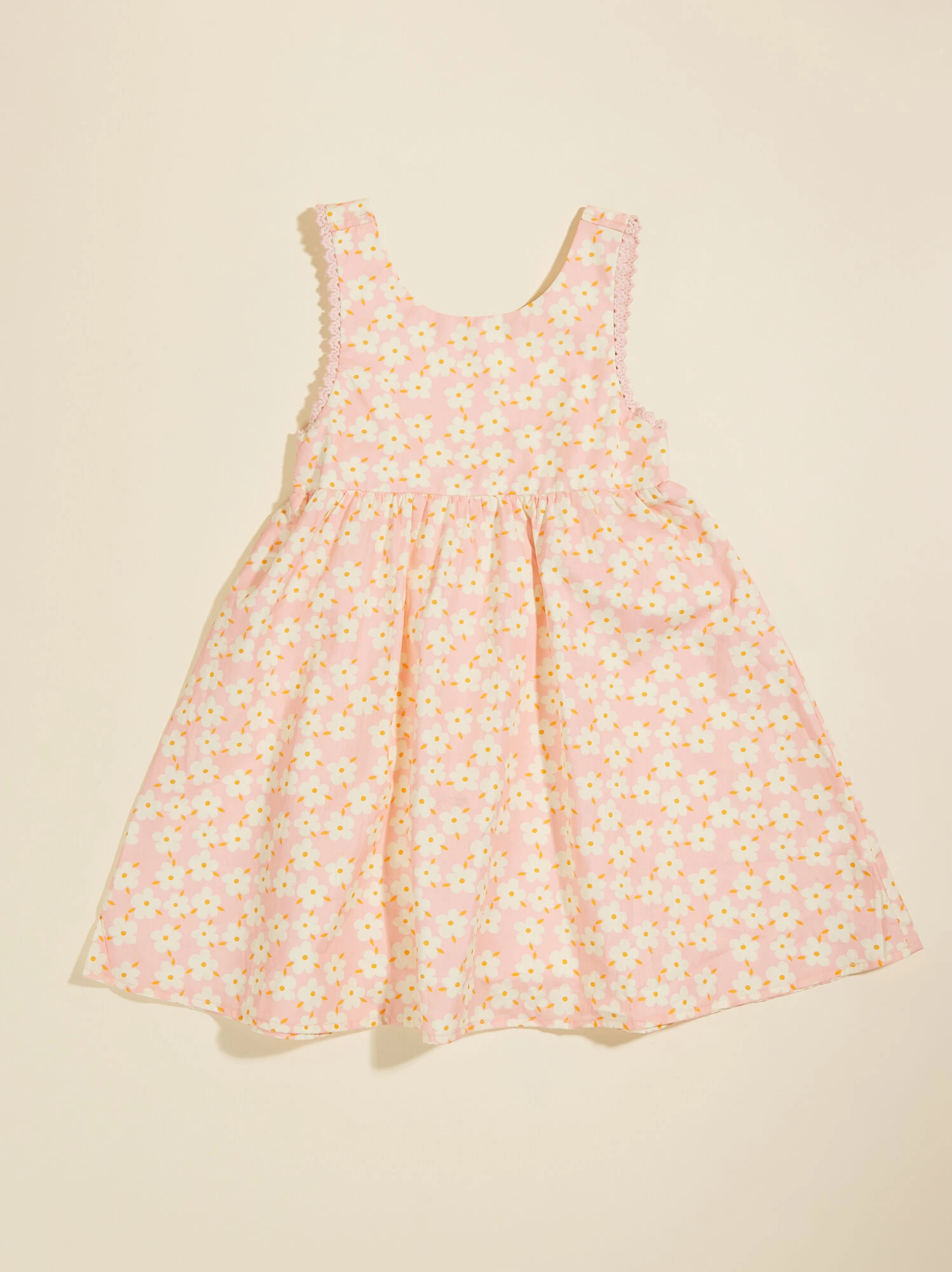 This adorable floral dress for your little one features delicate lace trim and smocked detailing at the back, ensuring a comfortable and stylish fit. With adjustable straps and a charming tiered back ruffle, it combines practicality with sweet elegance in a flare silhouette that’s perfect for your babe’s playtime or special occasions.