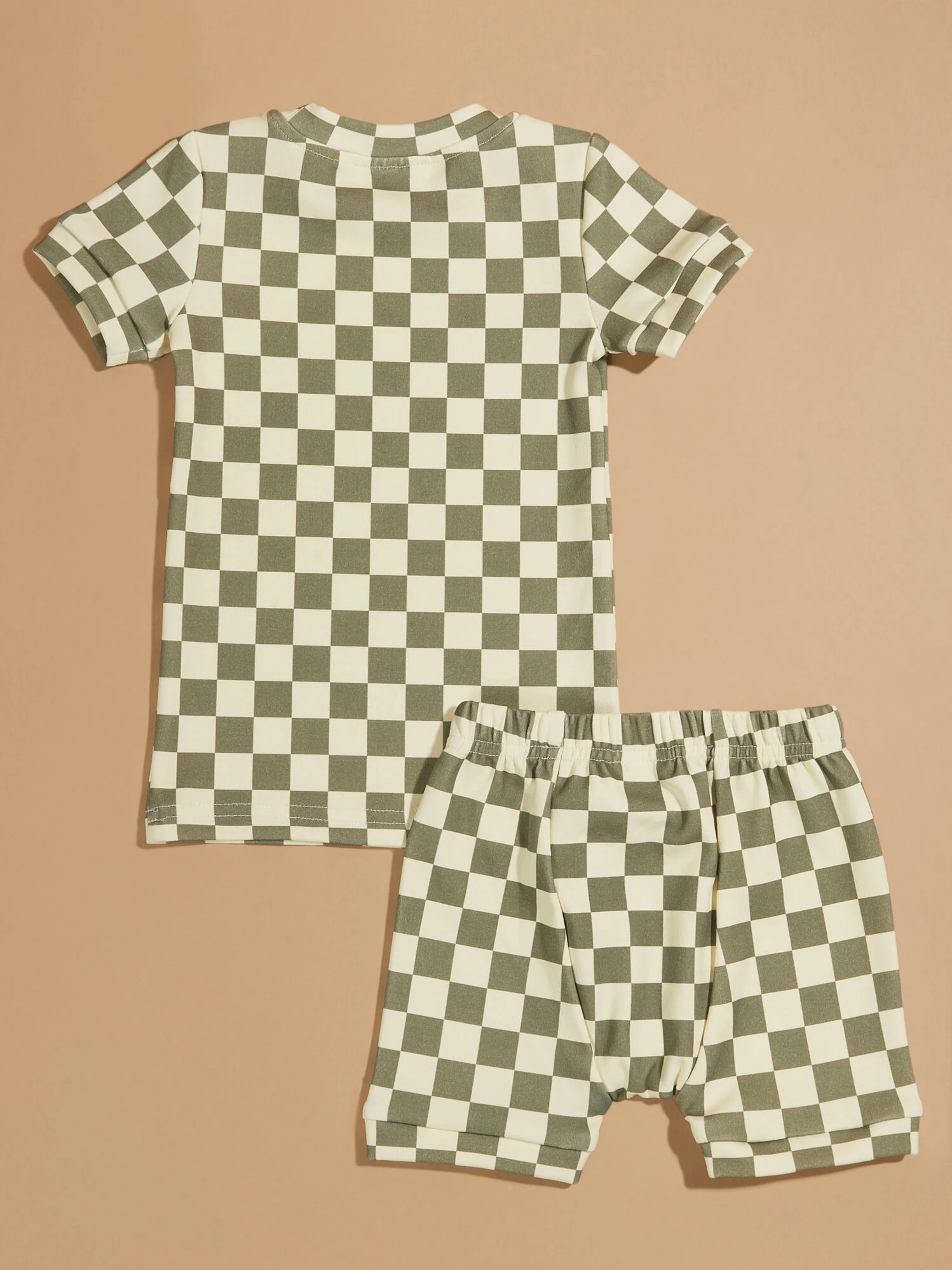 Perfect for lounging or a day of activities, this set is a must have for your boy, featuring a retro checkered print a subtle cuffed sleeve and short hems. The buttery smooth material provides a soft stretch for easy movement and ultimate comfort during a play days.