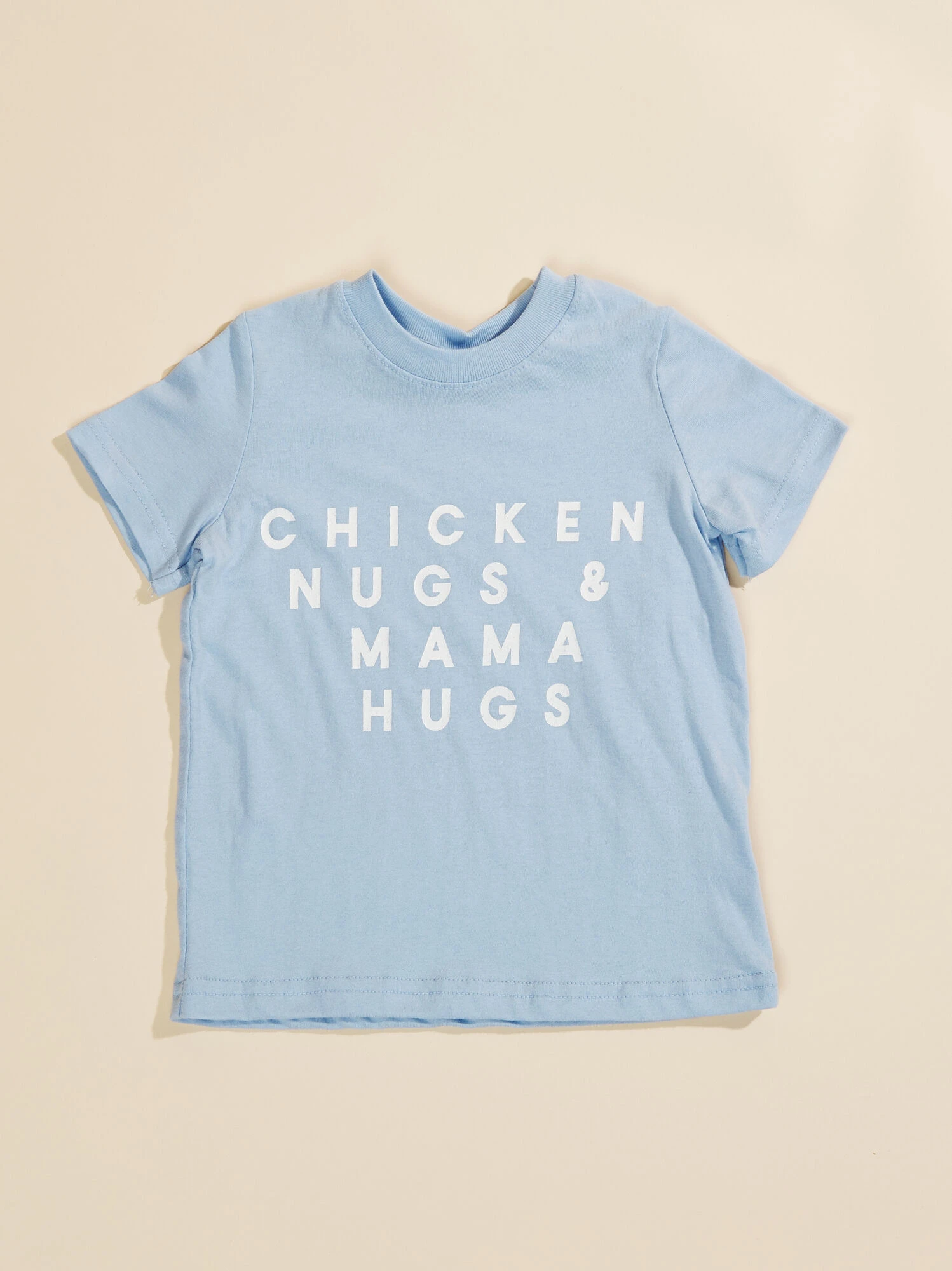 Chicken nugs & mama hugs, what more does your little one need? This adorable and super soft graphic tee is the perfect pick for a day out, or a day around the house!