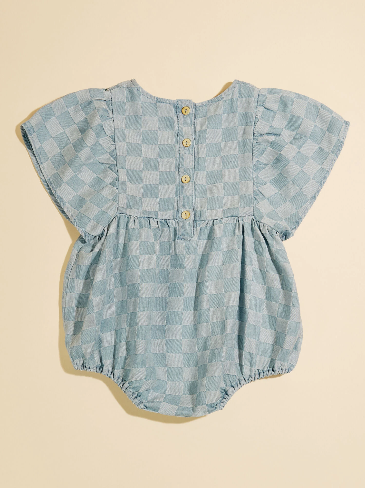 This one-piece outfit is perfect for year-round wear. The soft, breathable fabric keeps your little one comfortable, while the charming checkered print adds a classic touch. With snaps at the bottom for easy diaper changes, this romper is a must-have for any baby’s closet.