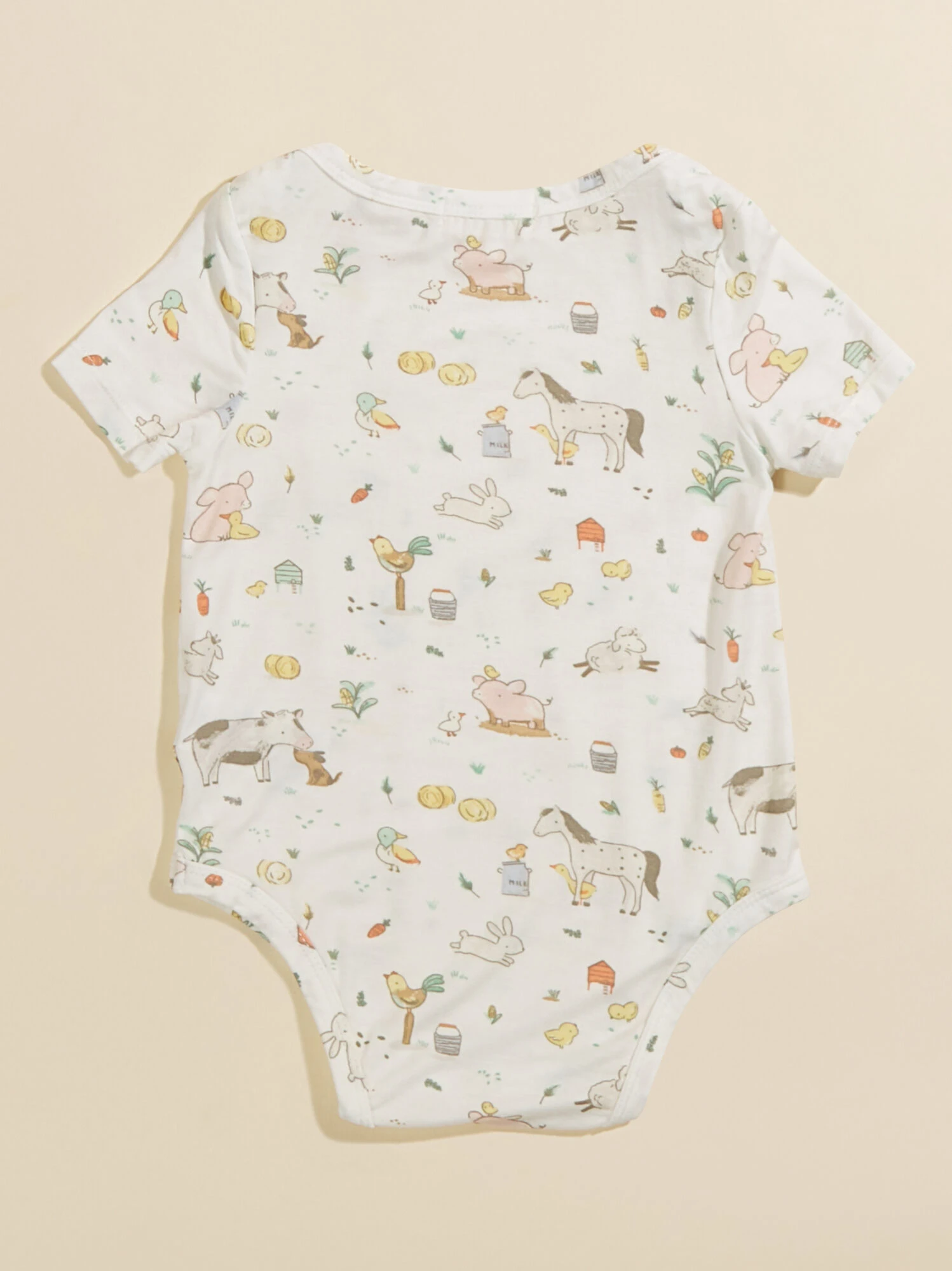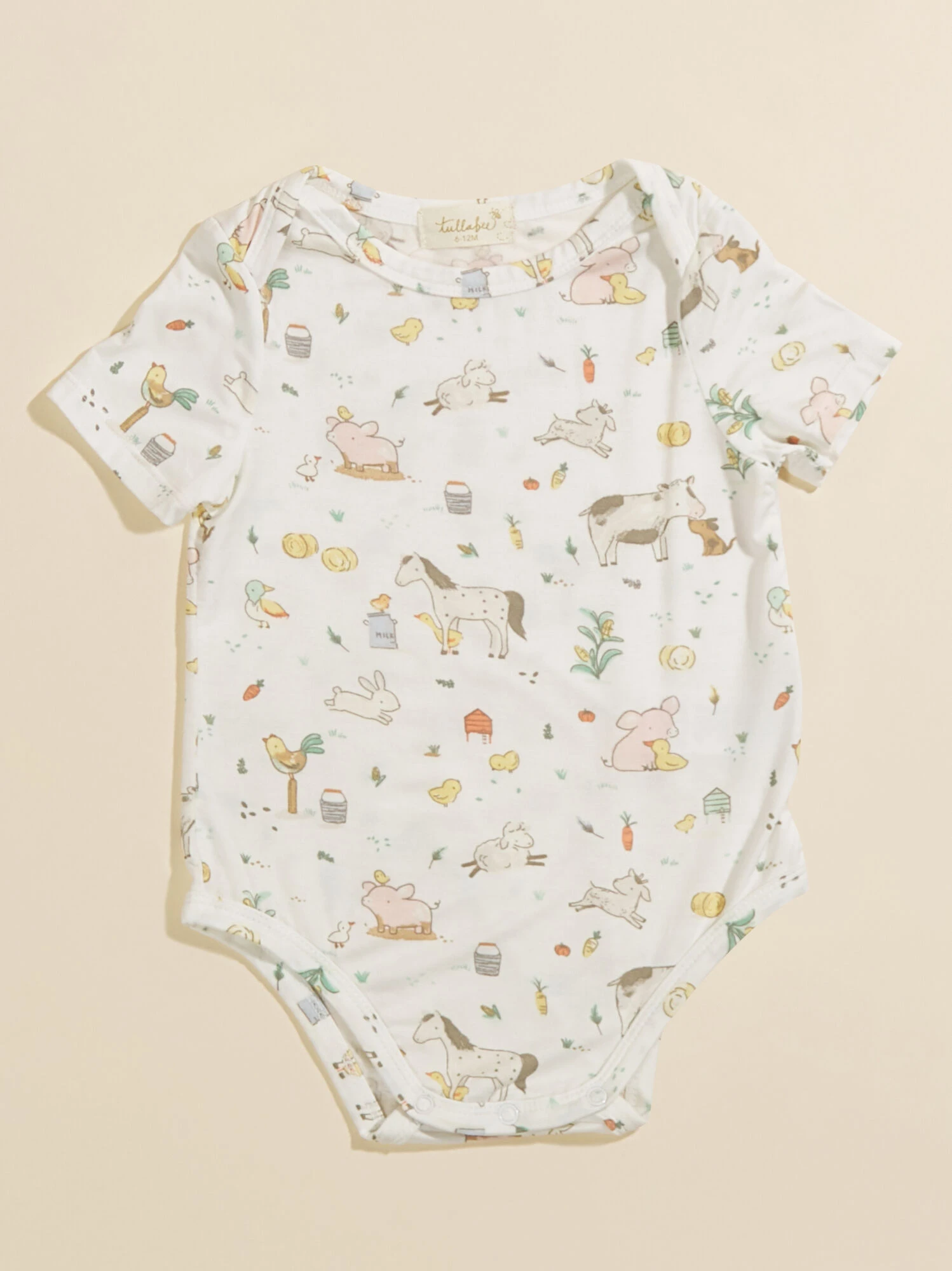 This lightweight one-piece is carefully crafted from ultra soft eco-friendly fabric from bamboo, providing breathable comfort for your babe. The farm animal inspired print makes this an adorable, must-have base layer your little will wear all year-around.