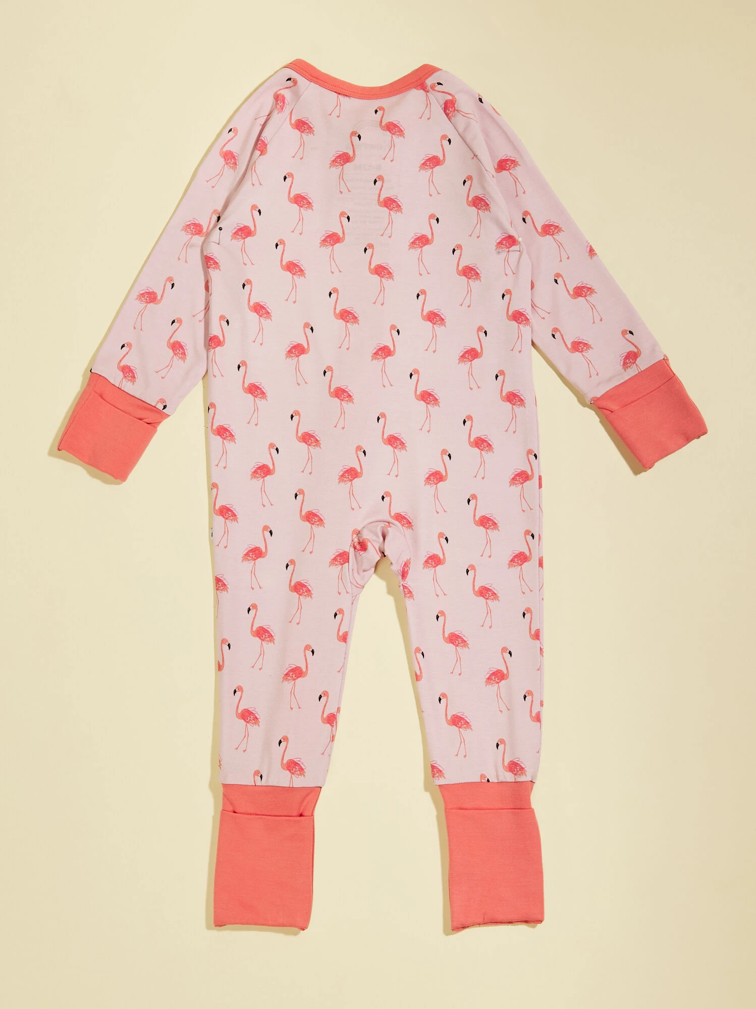 Indulge your little one in the cozy comfort of this sleeper adorned with sweet flamingos. Made from soft, eco-friendly material, it ensures a gentle feel against your babe’s delicate skin. Complete with hand and foot cuffs and a two-way zipper closure, it offers practicality and cuteness in one adorable outfit.