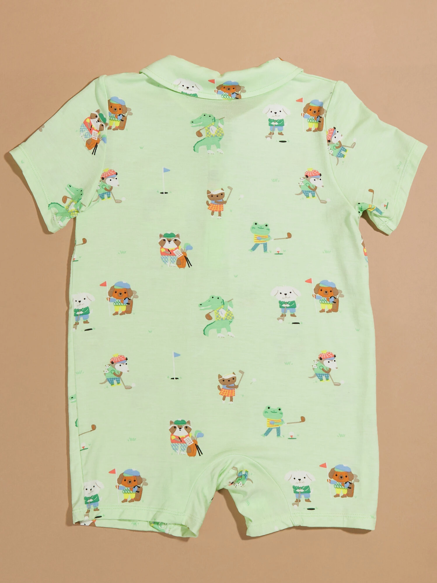 This golf animal inspired jumpsuit will wrap your little boy in in cool lightweight comfort, crafted from eco-friendly bamboo material. This polo has a convenient front pocket and preppy collared neckline to make this one-piece the cutest look for outings or lounging at home.