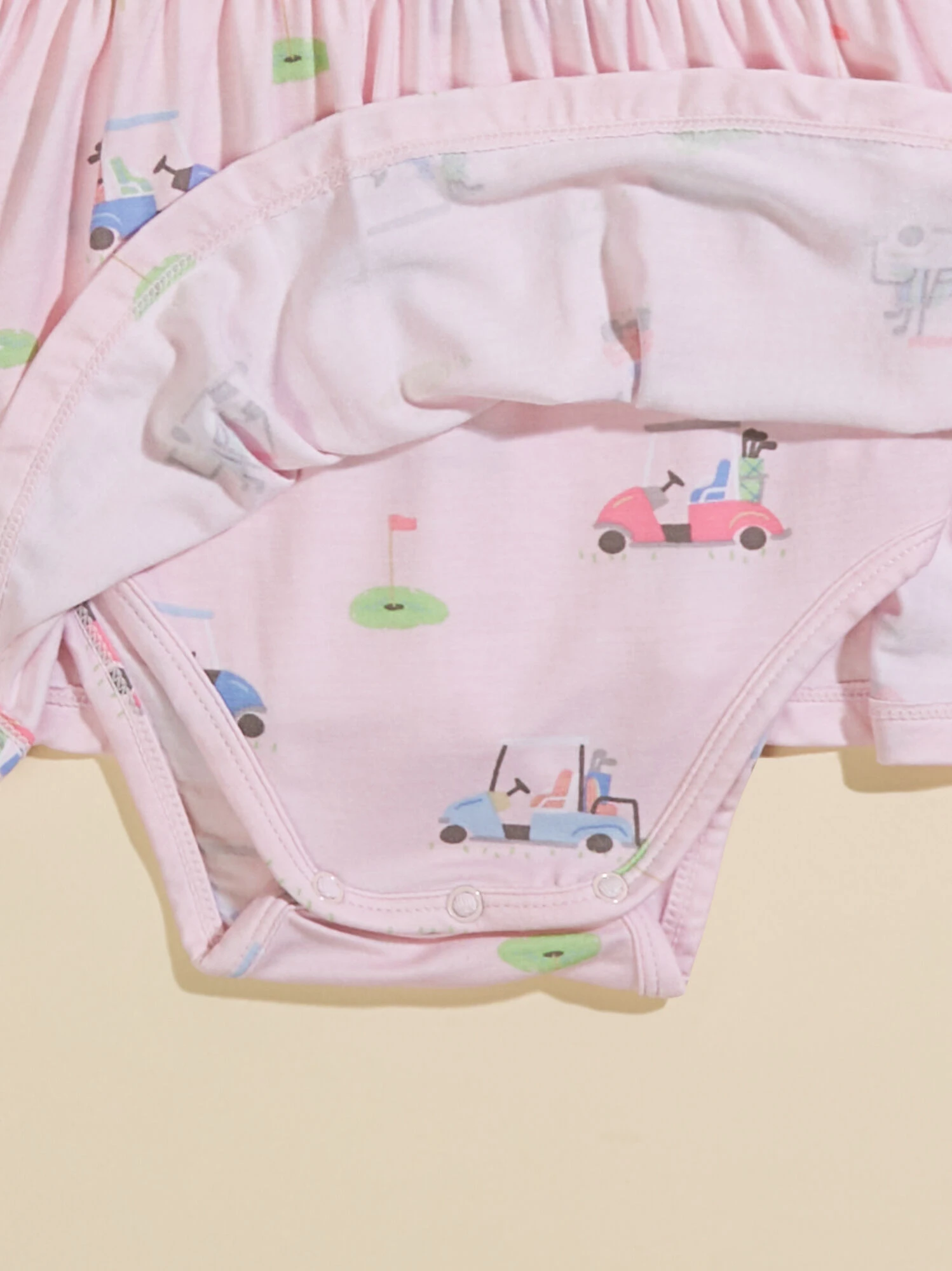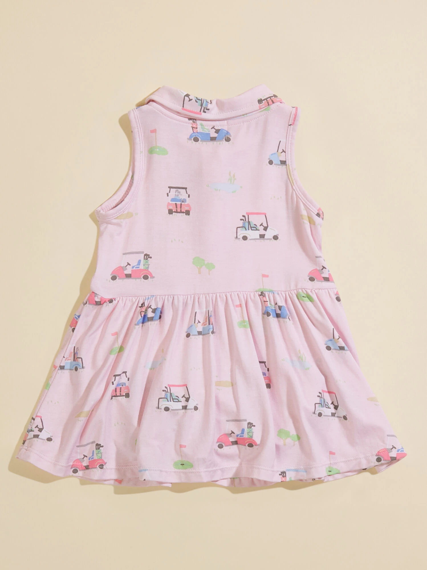 For an adorably preppy look, this one and done outfit is a must for any outing with your girl. The golf print, collared polo neckline, and gathered waistline are sure to make this a favorite, while the ultra soft, eco-friendly fabric from bamboo provides a lightweight, breathable feel for your little.