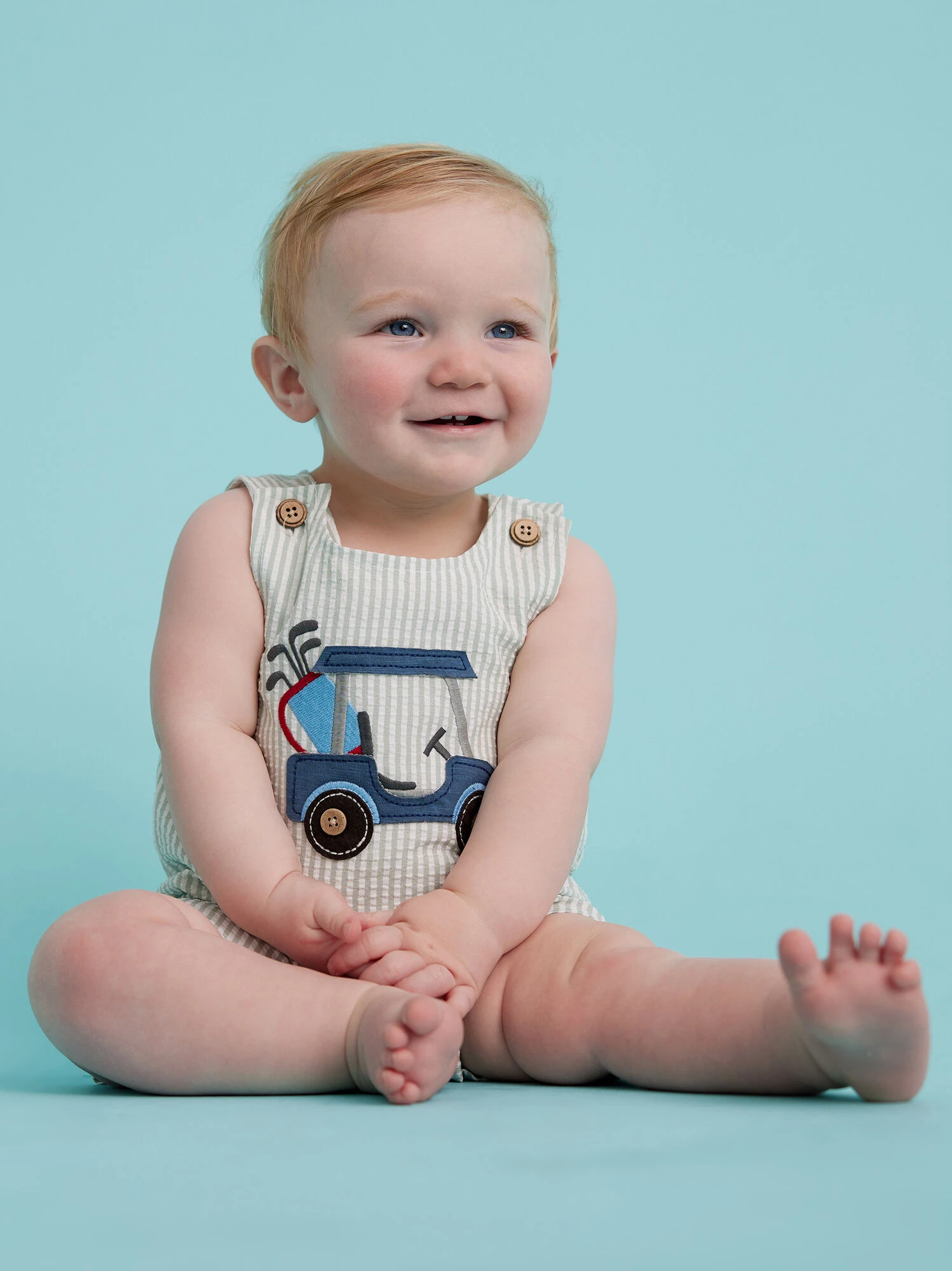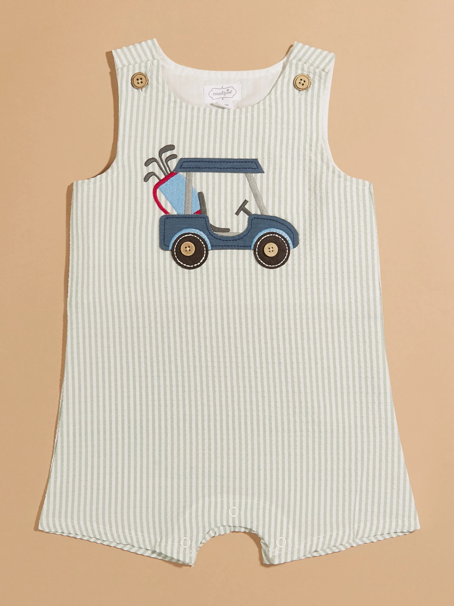This adorable jumper for your little one showcases an embroidered golf cart design. With convenient buttons at the top and snap closures along the bottom, dressing and changing your babe becomes effortless. This jumper combines comfort and style, making it perfect for both playtime and outings.