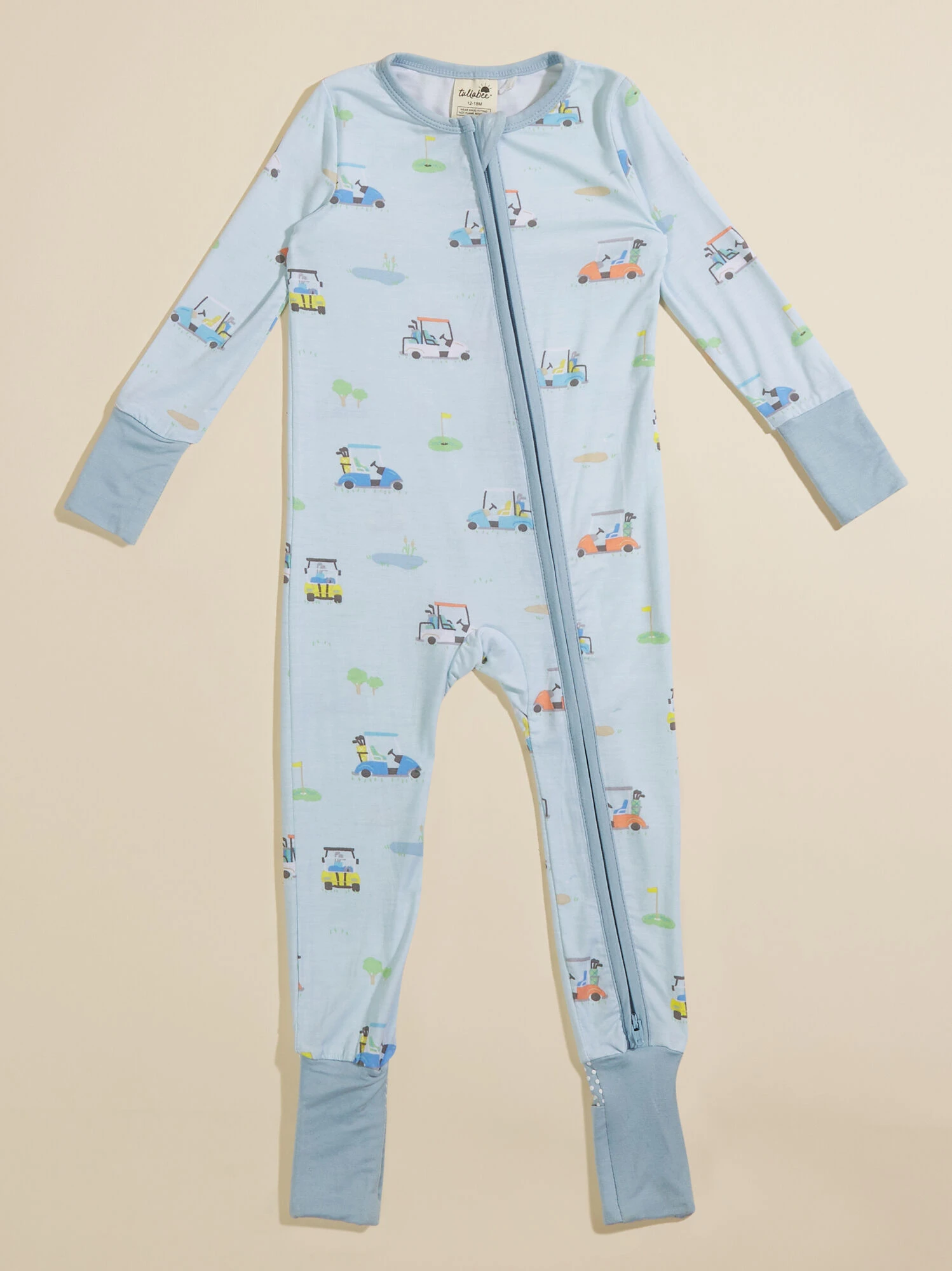 Keep your little cozy for bedtime in this golf inspired sleeper featuring a buttery soft eco-friendly fabric from bamboo to provide lightweight, breathability. The two-way zipper creates easy access for diaper changes, while the fold over hand and foot cuffs prevent accidental scratches.