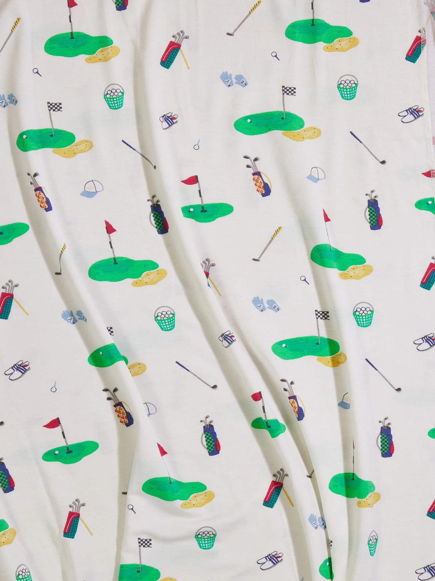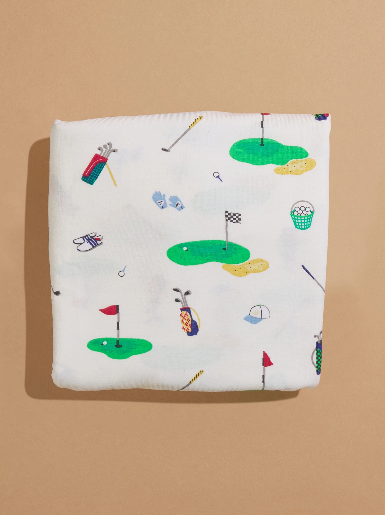 This soft, eco-friendly swaddle is comfort guaranteed for your baby. Offering a lightweight, unhindered feel, your little one will feel perfectly cozy wrapped in this breathable cloth made of bamboo fibers featuring a sporty golf print.