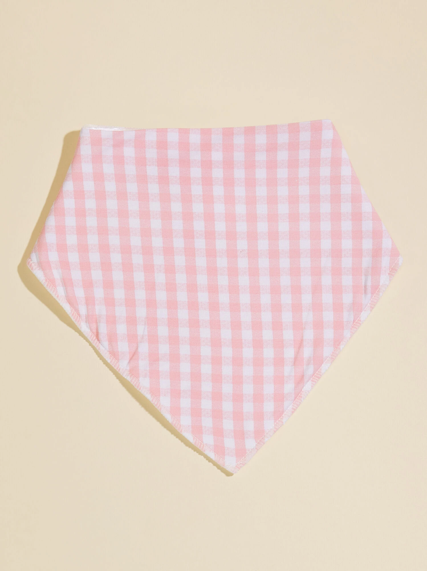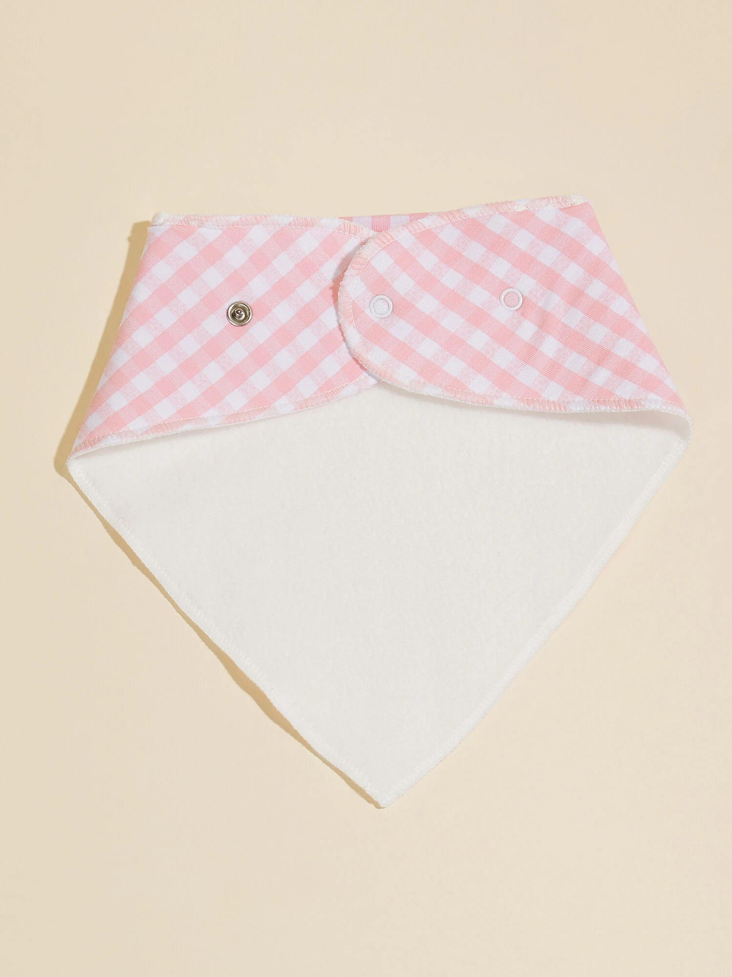 This sweet bandana bib with a pink gingham print is not only charming but also functional with convenient snapped closures, making it easy to secure and adjust. The soft bamboo material offers a gentle feel against the skin, providing both style and practicality during teething or mealtime.