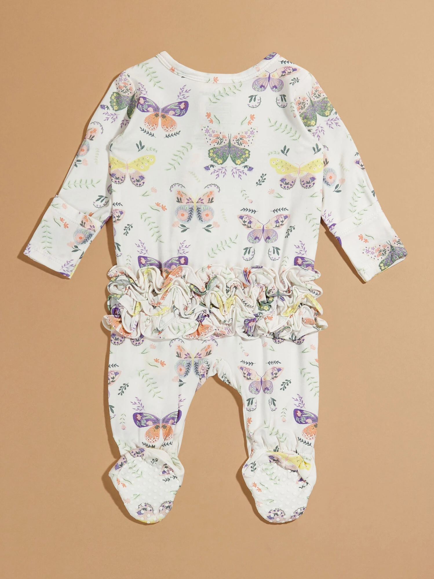 Dress your girl in soft comfort for bedtime with this butterfly footie featuring ruffle trim for the sweetest detailing. The eco-friendly bamboo material ensures lightweight breathability, while the fold over hand cuffs and non-slip foot grippers protect your babe from accidents.