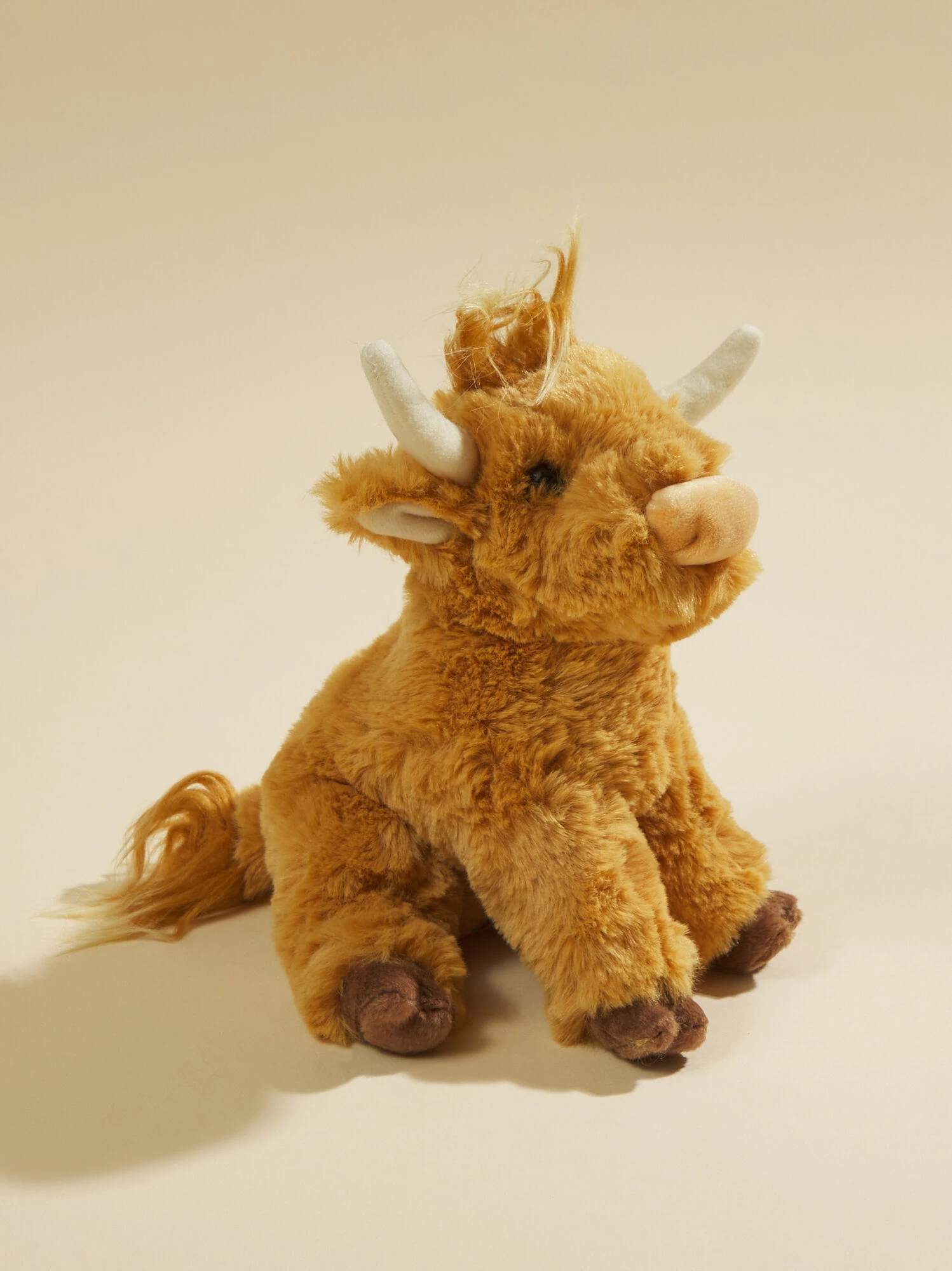For the perfect bedtime cuddle companion or playtime friend for your little, this soft plush cow is the perfect choice for your babe. The carrying size is a convenient style, while the fluffy fur offers a soothing touch for your little one.