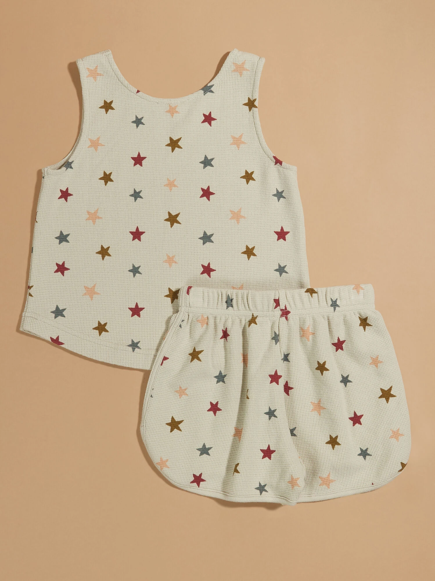Elevate your babe’s wardrobe with this adorable stars tank top and shorts set, crafted from soft and stretchy ribbed material for maximum comfort. The tank top features a classic sleeveless design, while the shorts offer an elastic waistband for easy dressing and a secure fit. Perfect for the July 4th holiday, this set combines style and practicality for your little one’s everyday adventures.