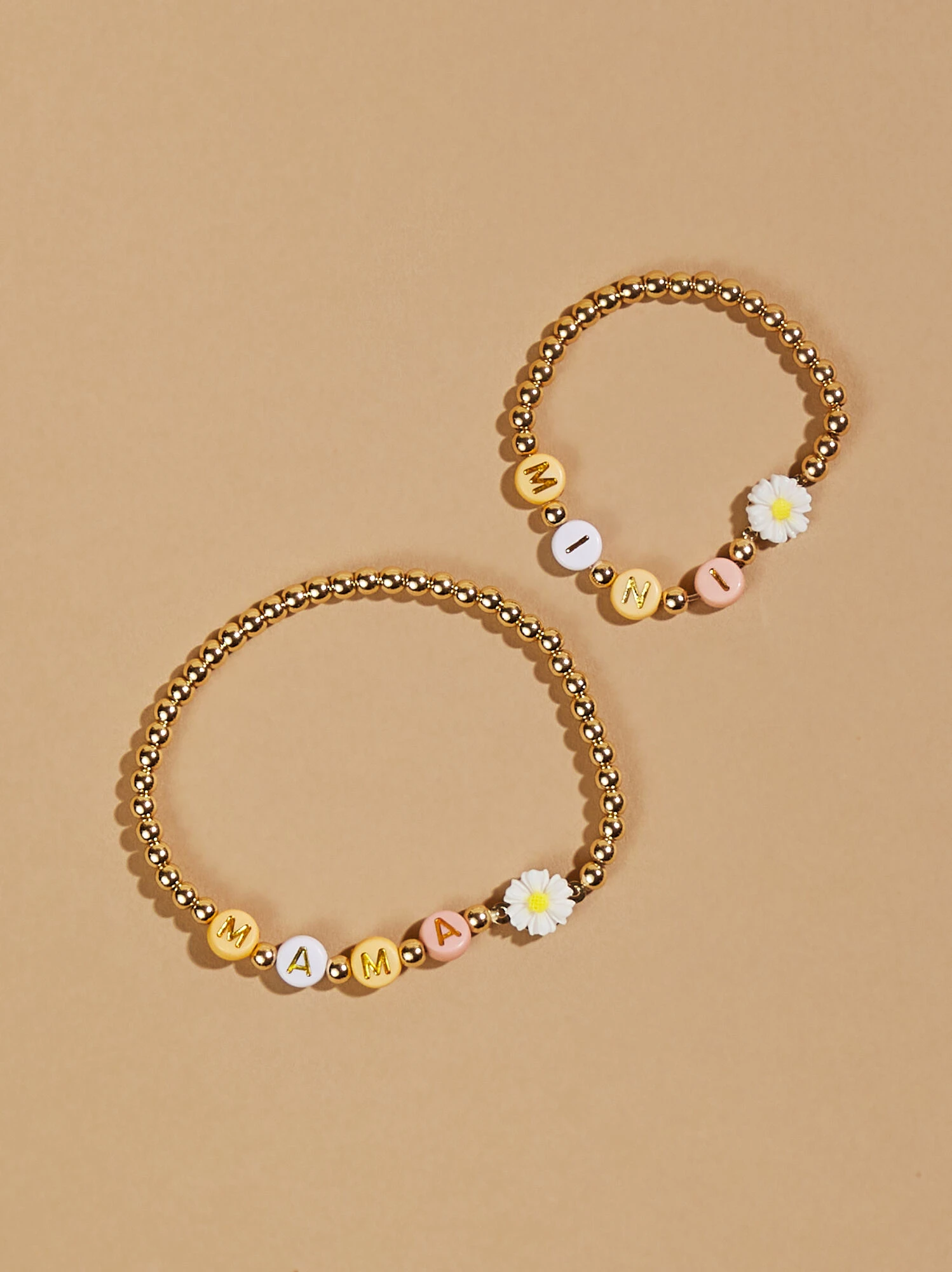 Your little will love matching with mama in these fun pink Ombre bracelets featuring a flower accent and gold beading. The stretchy slip on style will make these an effortless accessory to add to all the summer outfits this season!