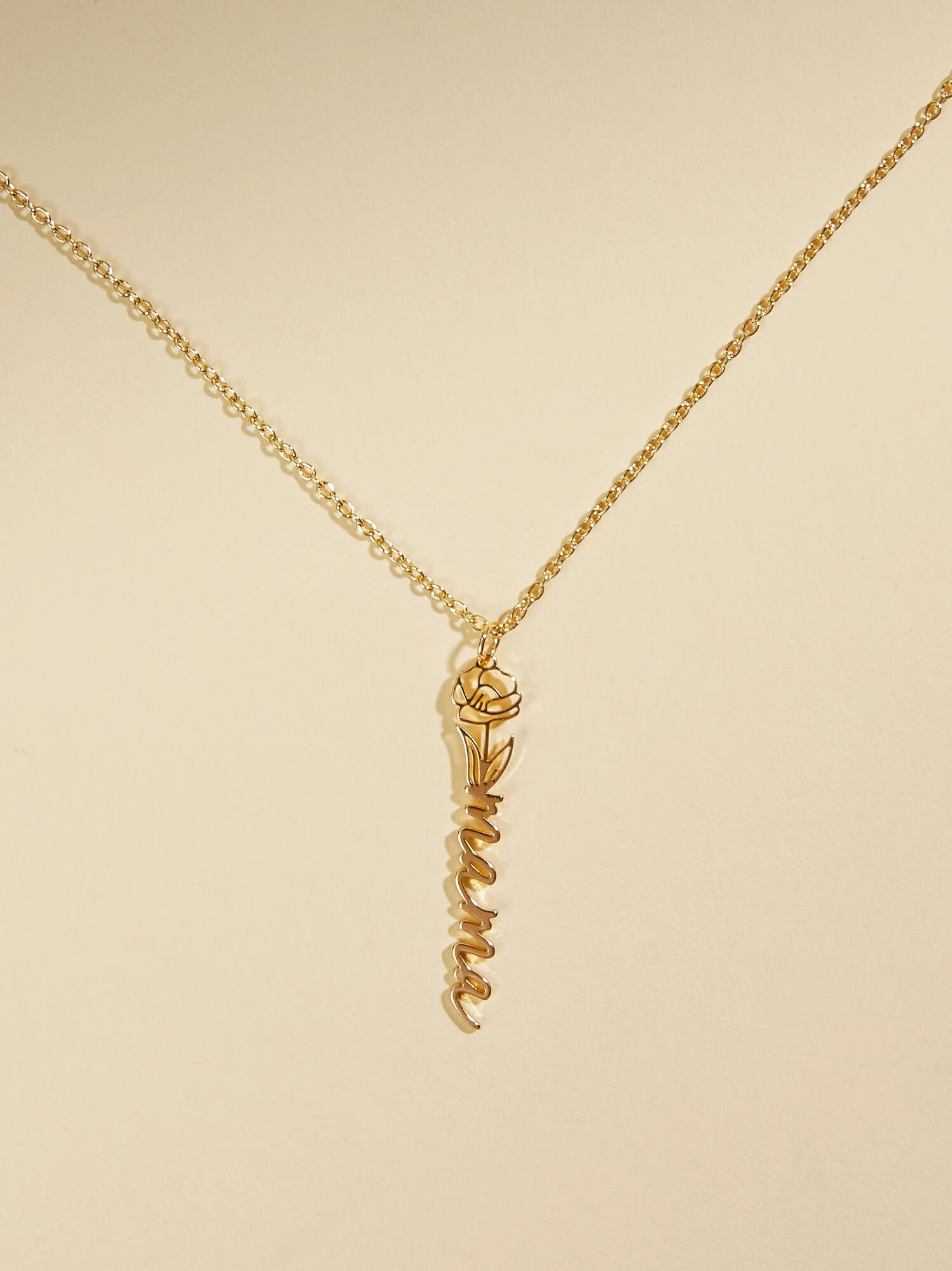 Complete your look for all your outings with this dainty accessory in a classic gold design with mama script lettering and a rose flower detail. The timeless chain style offers an adjustable length to get your perfect fit.