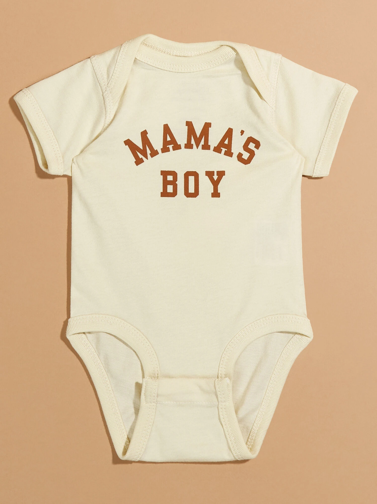 This irresistibly adorable bodysuit features a Mama’s Boy graphic in a simplistic design, crafted for your little one’s comfort with lightweight and easy-to-wear fabric. The classic crewneck style makes this a staple one-piece for everyday wear with snap closures for easy dressing.