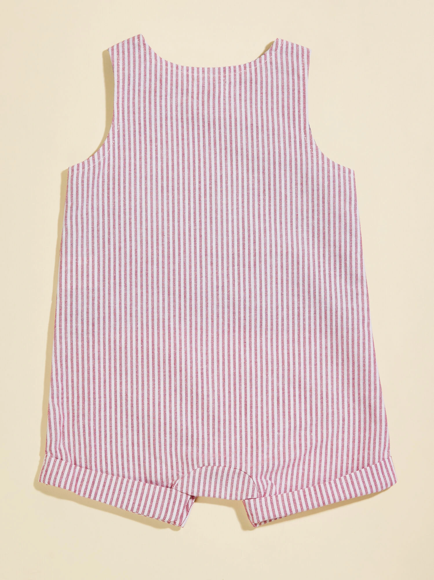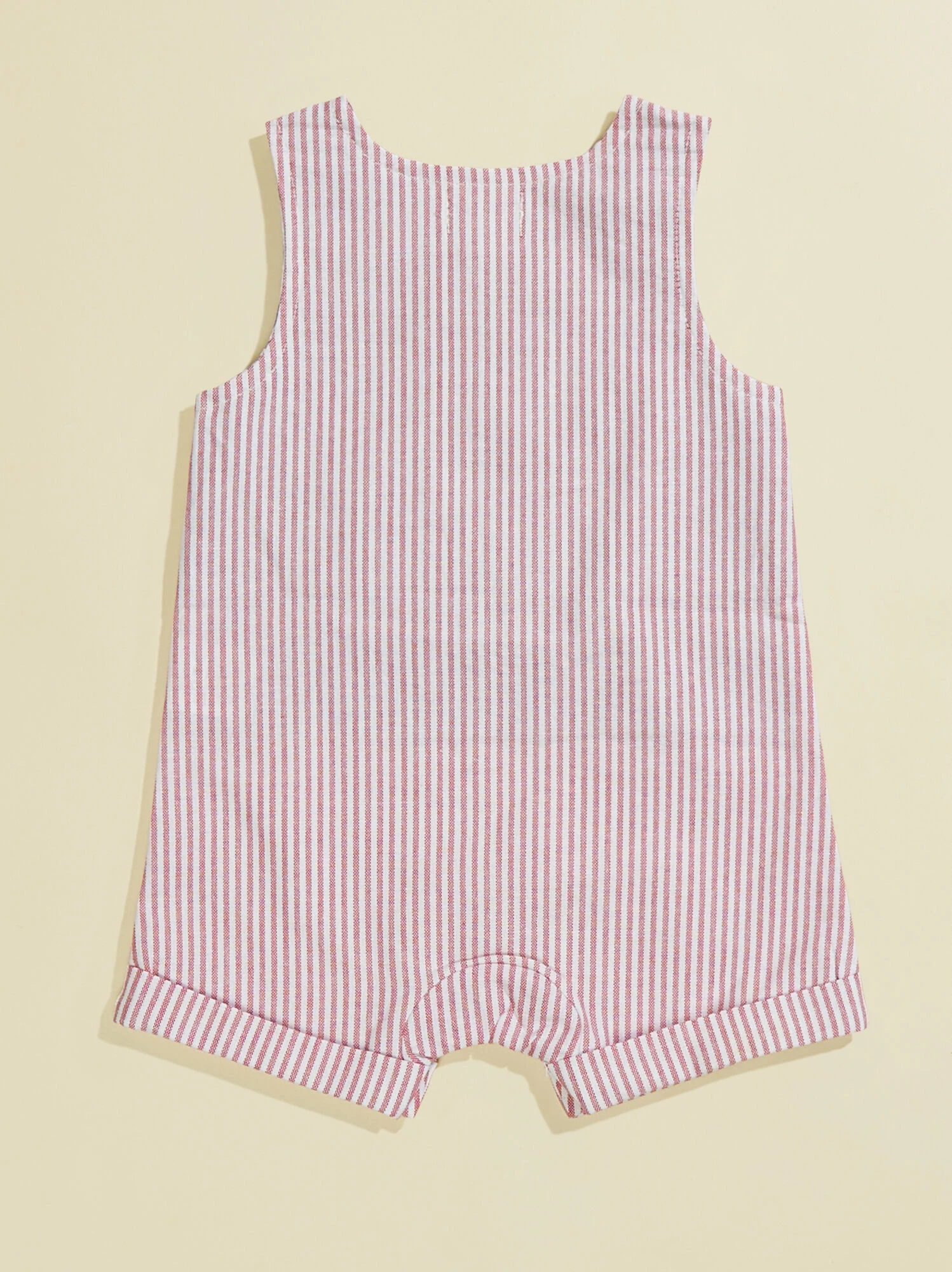 Grab this all in one outfit by MudPie featuring a red striped pattern, with a blue striped lining giving a fun patriotic look, perfect for an Independence Day celebration this summer season. The sailboat and crab patch will be your little’s favorite feature!