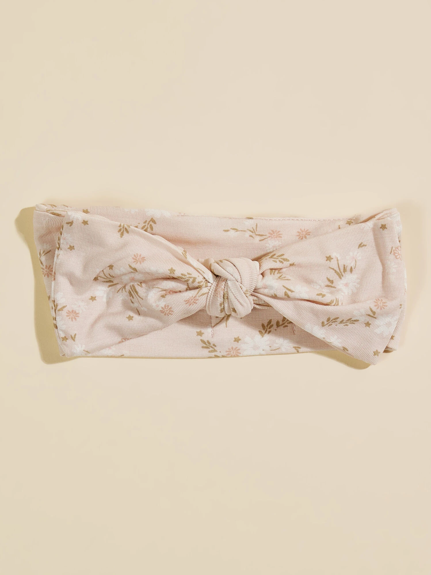 Style your little in head to toe cuteness with this elegant floral print headband featuring an adjustable tie and stretchy fabric. The eco-friendly material from bamboo offers a soft feel for an accessory that gives your little maximum comfort during any outing.