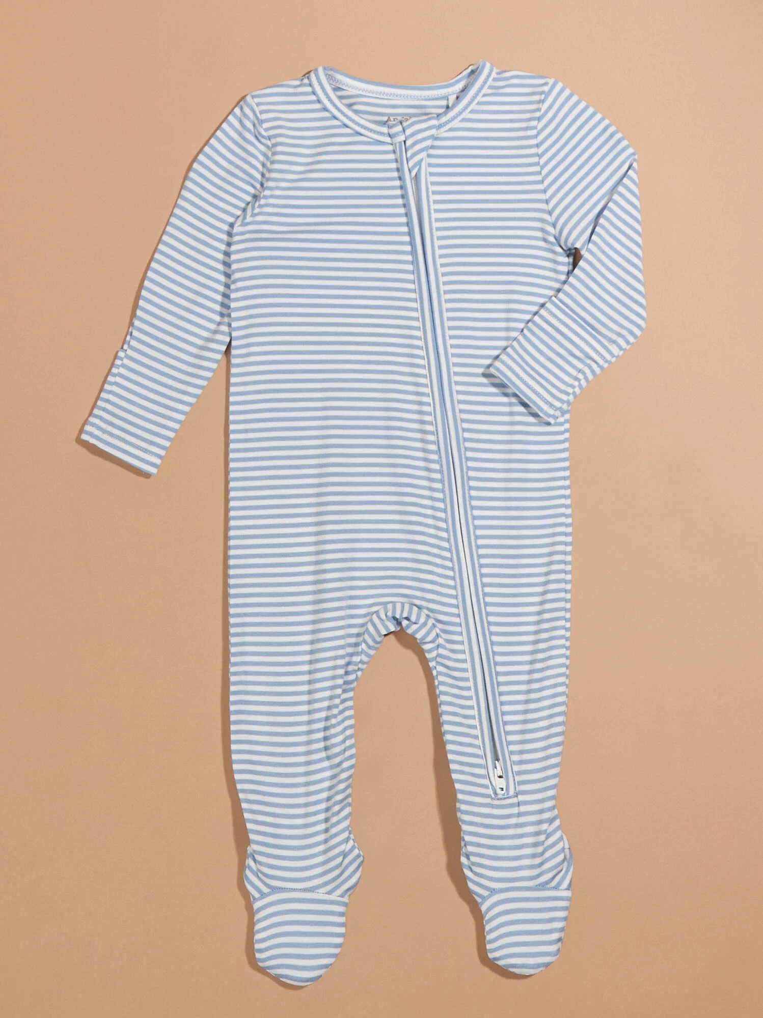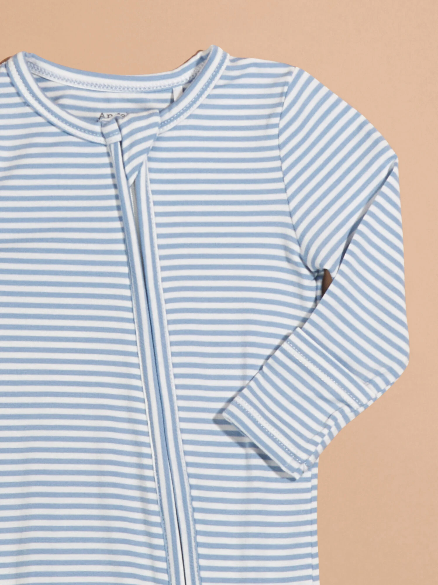 Your little one will have all the cuteness and comfort in this versatile footie featuring a timeless striped print and buttery soft bamboo fabric. The two-way zipper brings effortless ease to dressing, while the fold over hand cuffs and non-slip foot grips prioritize your babe’s needs.