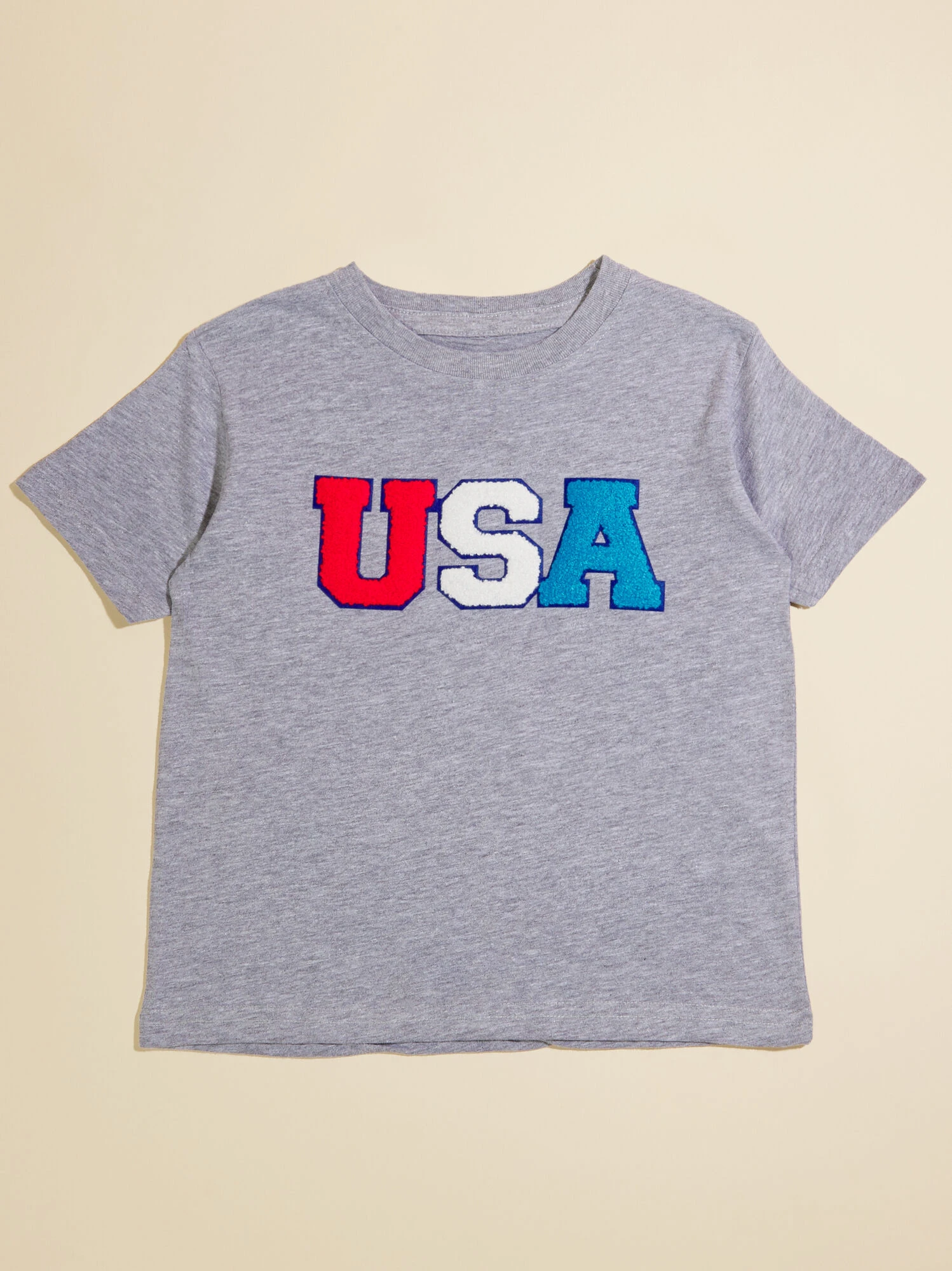 Complete your little’s patriotic look with this simplistic tee featuring a USA chenille patch and classic crewneck style. The lightweight fabric is crafted from soft cotton material for ease and stretch that keeps your little comfortable for a day of outdoor fun in the sun.